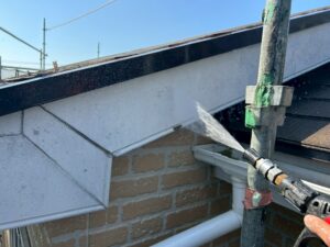 高圧洗浄は、強い水圧で外壁に付着した汚れやコケ、古い塗膜などをしっかり洗い流すことができます。
